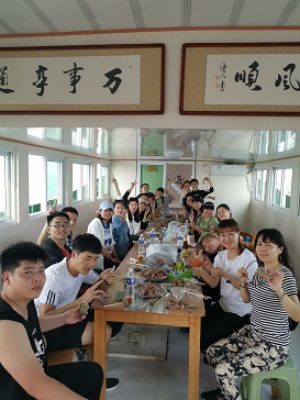 接下來的時間里,一行人歡聲笑語,合影錄像,感受海面帶來的和風。下午2時左右漁船開始撒網捕魚,并迎接了一頓豐盛的海鮮盛宴。下午5時左右,漁船返行靠岸,此次走進新漁村活動圓滿落下帷幕。