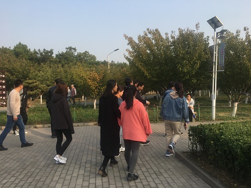 下午三時(shí),中鉆園林的員工放下手中的工作到興隆公園。園里不僅銀杏落葉滿地,小湖流水曲境通幽,更有1650米長的健康步道。